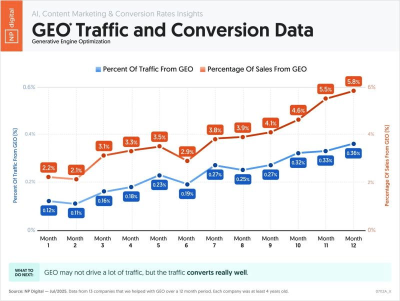 因為回到一個最基本的問題,國外的光頭(Neil Patel)報告也有提到你不論在做 AIO、GEO,這些東西它只是可見度提高,他本身不會帶來流量,你要流量還是回歸到 SEO。
