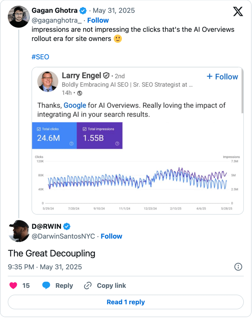 這個這個真的是,現在因為很多人都在關心說完蛋了,AI 摘要或者是 LLM 都讓網站流量掉很多,其實都會問說怎麼樣去拯救它。